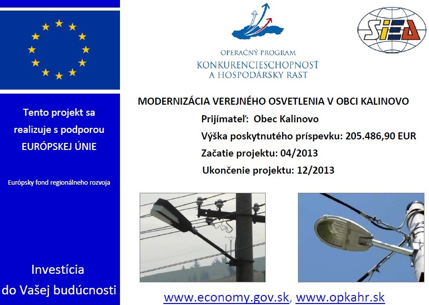 Názov a stručný opis projektu: Modernizácia verejného osvetlenia v obci Kalinovo